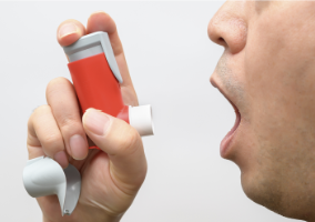 - 약물 치료: 천식 증상을 완화하거나 예방하는 약물을 흡입하거나 복용합니다. 약물 치료는 장기적 질병 조절제와 속효성 증상 완화제로 나눌 수 있습니다. 장기적 질병 조절제는 매일 규칙적으로 사용하여 기도의 염증 반응을 억제하고 천식 발작을 예방하는 약제입니다. 속효성 증상 완화제는 증상이 심할 때만 사용하여 기관지를 확장하고 호흡 곤란을 줄이는 약제입니다 . 흡입제는 약물이 직접 폐에 전달되어 다른 부작용 없이 효과를 낼 수 있도록 만들어진 약제입니다. 하지만 사용법이 정확하지 않으면 약물이 제대로 폐에 도달되지 않습니다. 정확한 사용법을 익히는 것이 무엇보다도 우선되어야 합니다.