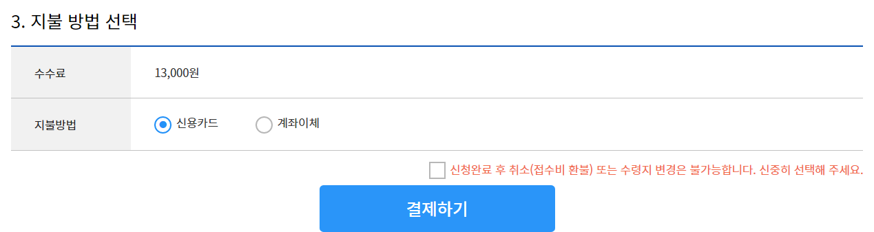 이 방법으로 할시 비용은 1천원이지만 재발급 시 시험장을 다시 방문해야 한다는 번거로움이 있습니다.
