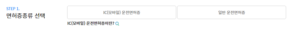 면허증 종류를 선택합니다. IC 모바일 운전면허증 선택