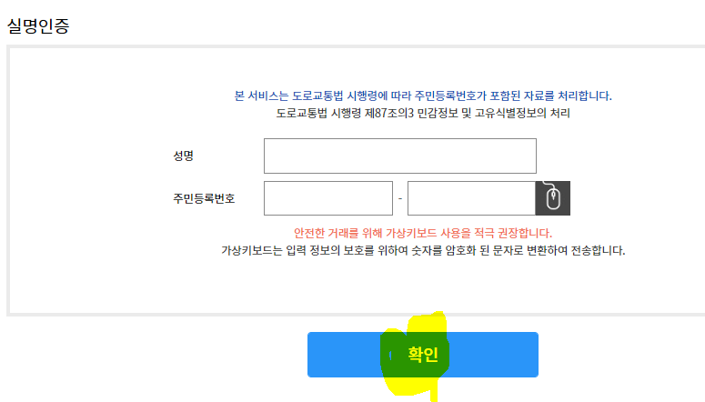 실명을 인증 후 확인을 눌러 줍니다.