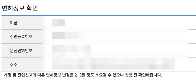 자신의 면허정보가 맞는지 확인합니다.