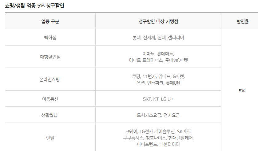 우리국민행복카드 쇼핑,생활 할인 및 언택트 할인 혜택