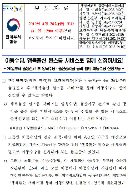 또한 행복 출산 원스톱 서비스에서 출생 신고와 함께 부모 급여를 신청 할 수 있습니다.