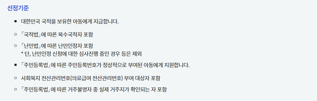 아동수당은 만8세미만의 아동인 0~95개월령에게 지급됩니다.