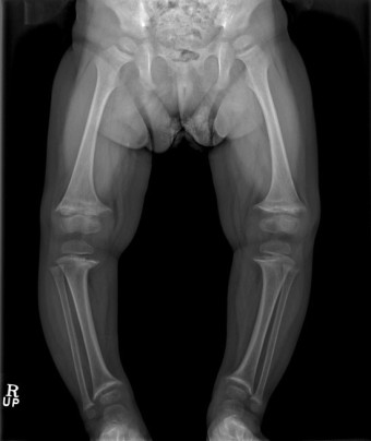 또한 오목가슴이나 척추의 변형(후만, 전만, 측만 등)을 초래하기도 합니다. 팔다리는 손목, 발목 부위 뼈 부분이 두꺼워지면서 두드러지게 만져지고, 약해진 다리로 몸무게를 지탱할 수 없어 다리가 휘어지며(안짱다리 또는 밭장다리), 구루병으로 성장 자체에 문제가 생기기도 합니다.