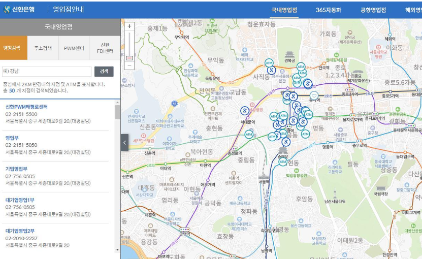 신한은행 홈페이지에서 신한은행 영업지점 및 ATM 기기 위치 등을 찾아 보실 수 있습니다.