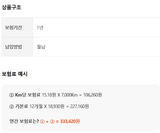월 보험료 계산 방식은 기본료 + 캐롯플러그로 자동 측정된 주행거리 보험료를 합산하여 계산합니다.
