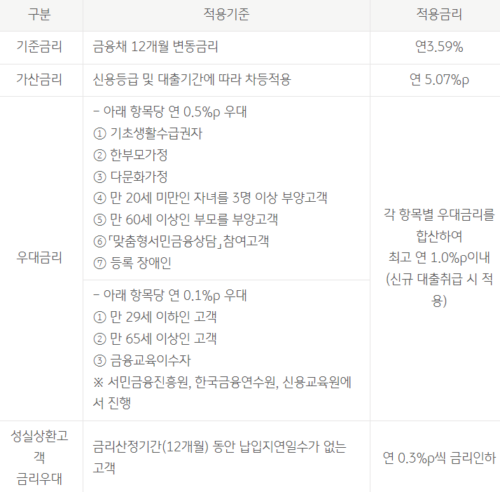 단 위의 대출 금리는 신용등급 3등급을 대출기간 5년을 기준으로 한 금리로 실제 적용 금리는 신청자분의 신용 및 대출조건과 우대금리 충족여부에 따라 달라질 수 있습니다.