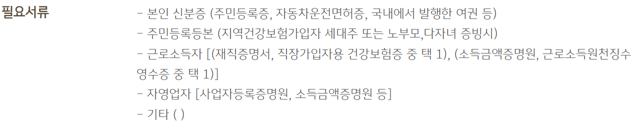 대출 진횅 시 필요한 서류는 다음과 같습니다.