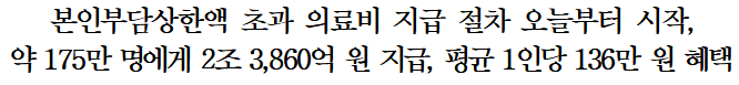 이번에 환급받는 금액은 의료비 본인부담상한액을 초과하여 의료비를 지출한 약 175만명에게 총 2조 3,860억원을 지급합니다.