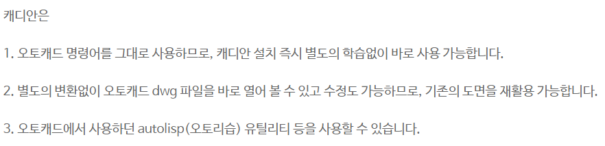 기존 오토데스크 사의 오토캐드 프로그램과 높은 호환성을 가지고 있는 캐드 프로그램으로 가격 차이 가성비 좋다고 소문이 나있습니다.
