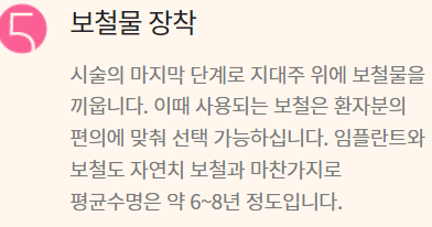 건강보험 적용 개수는 살면서 2개까지 가능하며 적용 부위는 아래턱,위턱 구분 없이 어금니 , 앞니 모두 적용됩니다.