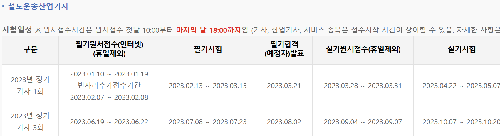 철도운송산업기사의 시험일정은 위의 pdf 파일을 참고하시면 보다 자세하게 나와 있습니다.
