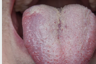 - 혀와 입 안 전체에 하얀 막이 두껍게 생김
