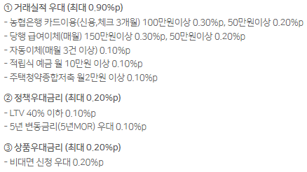 우대금리 조건(혼합금리 기준)