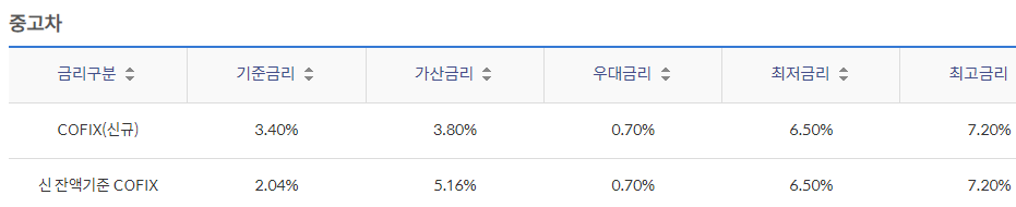 대출금리는 신차 대출이냐, 중고차 대출이냐에 따라 아래와 같이 금리가 달라집니다.