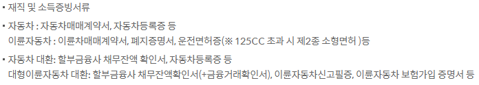 대출을 받으려는 대상 가능 차량은 아래와 같습니다.