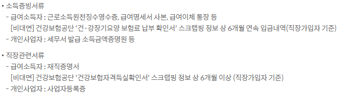 대출 진행 시 필요한 서류는 아래와 같습니다.