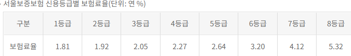 대출한도는 최대 2천만원까지 가능하며 금리는 아래와 같습니다.